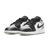 The Air Jordan 1 Low Shadow Toe (GS) for grade schoolers has the classic Nike tread that is ideal for both casual walking and light exercise.The Air Jordan 1 Low Shadow Toe (GS) for grade schoolers has a colour scheme composed of different shades of black, white, and grey. The sole is a bright white with a thin stripe of grey at the very bottom. The upper part of the shoe is made of different pieces of leather, and the Nike swoosh symbol appears in black on the side.The Air Jordan 1 Low Shadow Toe (GS) for grade schoolers was first released in December 2021.