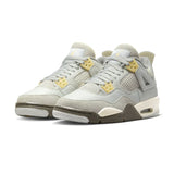 The Air Jordan 4 Retro SE Craft Photon Dust GS is a reimagination of Tinker Hatfields original 1989 design. The Air Jordan 4 Retro SE Craft Photon Dust for grade schoolers is designed with an all-leather upper in a subtle pale grey finish, with a shaggy suede forefoot overlay in a matching colour. It features molded eyelets with pale vanilla accents, and Jumpman branding on the tongue tag and heel tab. The suede quarter panels also have grid-embossed detailing. The shoes cushioning is provided by an exposed Air-sole unit in the white foam midsole. Additionally, its two-tone herringbone-traction rubber outsole ensures superior grip.