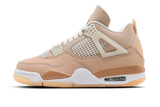The Air Jordan 4 Shimmer (W) arrives with a buttery beige Durabuck upper with semi-translucent Wings and a monotone Orange Bronze heel tab. In place of the classic Jordan Flight tongue patcha metallic Jumpman logo adds contrast to the softer tones in the design.